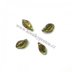Mačkané korálky české výroby ve tvaru bobkového listu s průvlekem v dolní čáti lisu. Rozměr 6 x 12 mm, tloušťka u průtahu 4 mm. Provedení 50200-54302. Balení 10 ks.