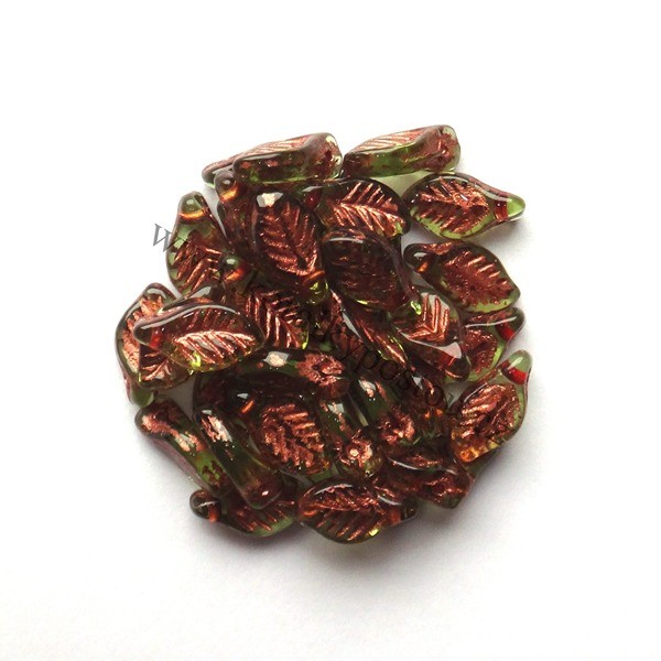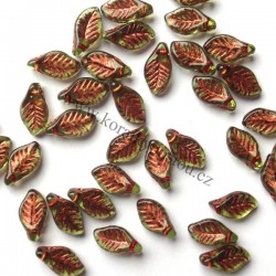 Mačkané korálky české výroby ve tvaru bobkového listu s průvlekem v dolní čáti lisu. Rozměr 6 x 12 mm, tloušťka u průtahu 4 mm. Provedení 50200-54319. Balení 10 ks.