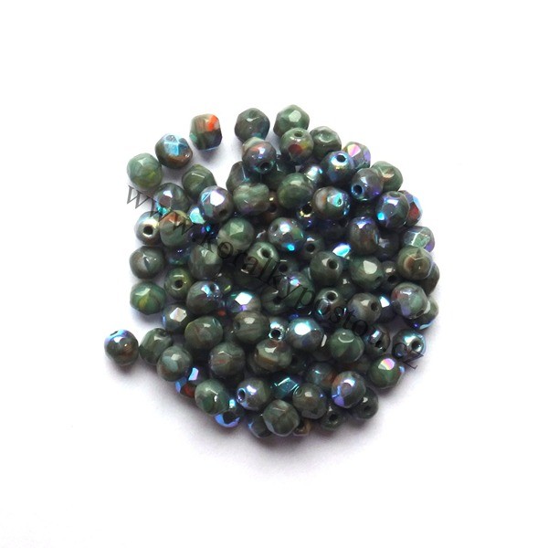 Broušené korálky české výroby, ohňovky, průměr 4 mm, provedení R5999-28701. Balení 60 ks.