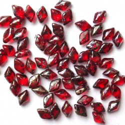 Mačkané dvoudírkové korálky MATUBO Gemduo™, rozměr 8 x 5 mm, provedení Siam Ruby - Rembrandt. Balení 30 ks.