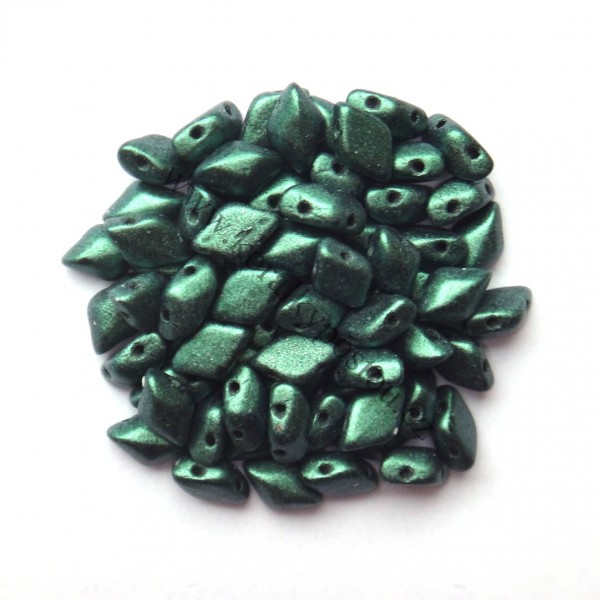 Mačkané dvoudírkové korálky MATUBO Gemduo™, rozměr 8 x 5 mm, provedení Metallic Suede - Lt Green. Balení 30 ks.