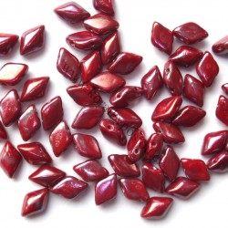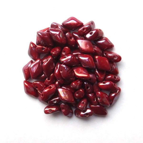 Mačkané dvoudírkové korálky MATUBO Gemduo™, rozměr 8 x 5 mm, provedení Coral Red Nebula. Balení 30 ks.