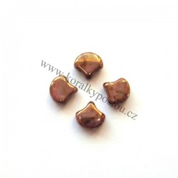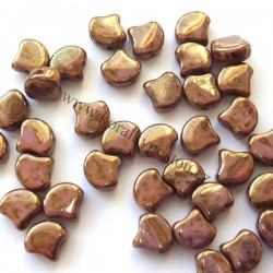 Mačkané dvoudírkové korálky české výroby MATUBO Ginko™, rozměr 7,5 x 7,5 mm, provedení Luster - Opaque Gold/White. Balení 20 ks.