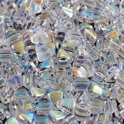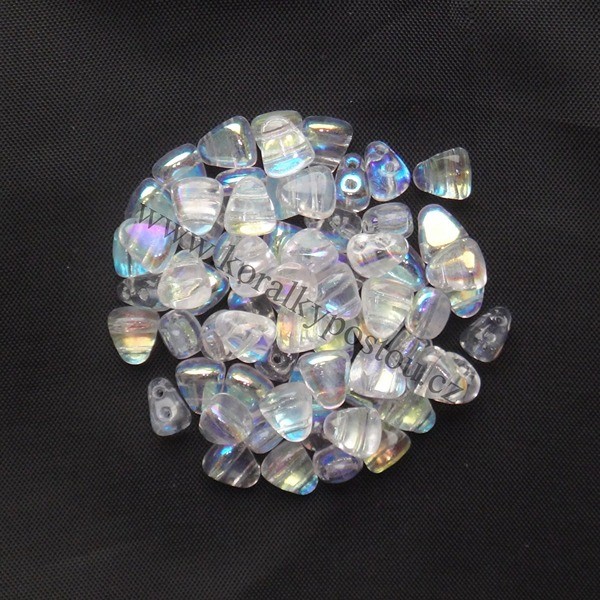 Mačkané dvoudírkové korálky české výroby MATUBO™ NIB-BIT, rozměr 5 x 6 mm, provedení Crystal AB. Balení 30 ks.