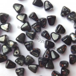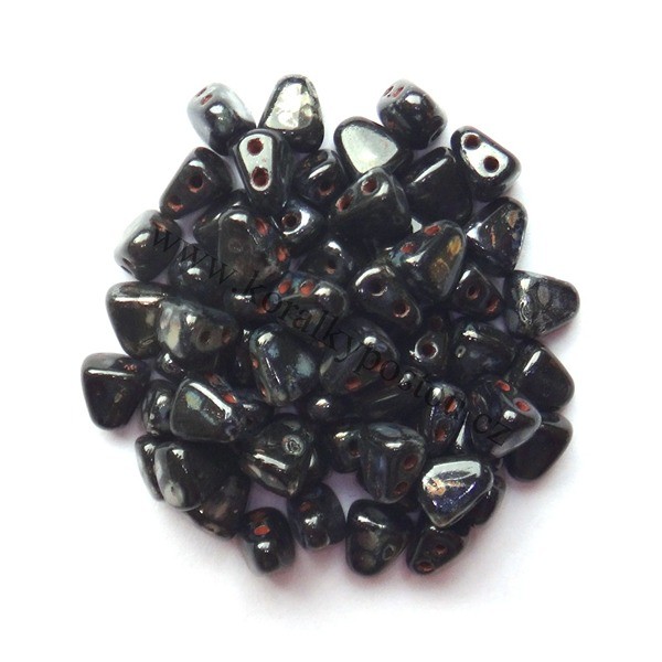Mačkané dvoudírkové korálky české výroby MATUBO™ NIB-BIT, rozměr 5 x 6 mm, provedení Jet Picasso. Balení 30 ks.