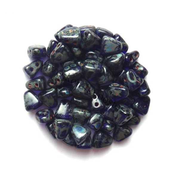 Mačkané dvoudírkové korálky české výroby MATUBO™ NIB-BIT, rozměr 5 x 6 mm, provedení Cobalt Dk Travertin. Balení 30 ks.