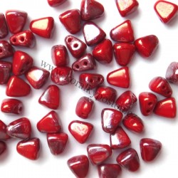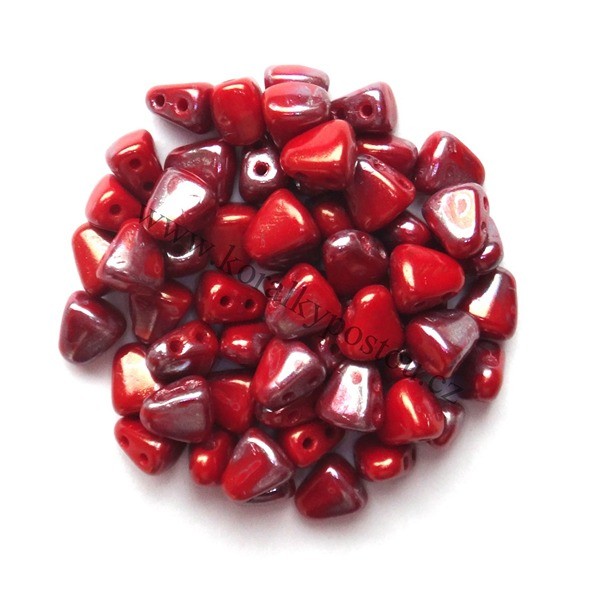 Mačkané dvoudírkové korálky české výroby MATUBO™ NIB-BIT, rozměr 5 x 6 mm, provedení Coral Red Nebula. Balení 30 ks.