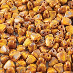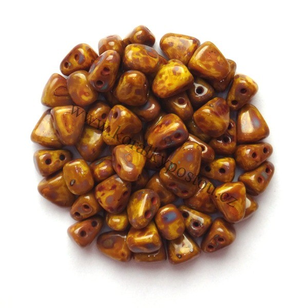 Mačkané dvoudírkové korálky české výroby MATUBO™ NIB-BIT, rozměr 5 x 6 mm, provedení Lemon Dark Travertin. Balení 30 ks.