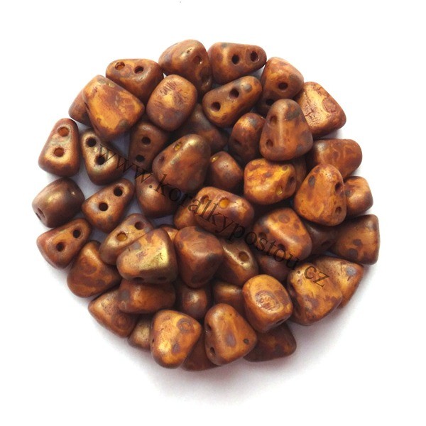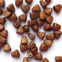 Mačkané dvoudírkové korálky české výroby MATUBO™ NIB-BIT, rozměr 5 x 6 mm, provedení Lemon Matt Bronze Picasso. Balení 30 ks.