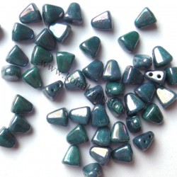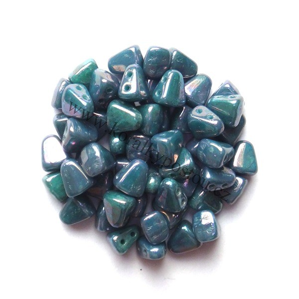 Mačkané dvoudírkové korálky české výroby MATUBO™ NIB-BIT, rozměr 5 x 6 mm, provedení Turquise Green Nebula. Balení 30 ks.
