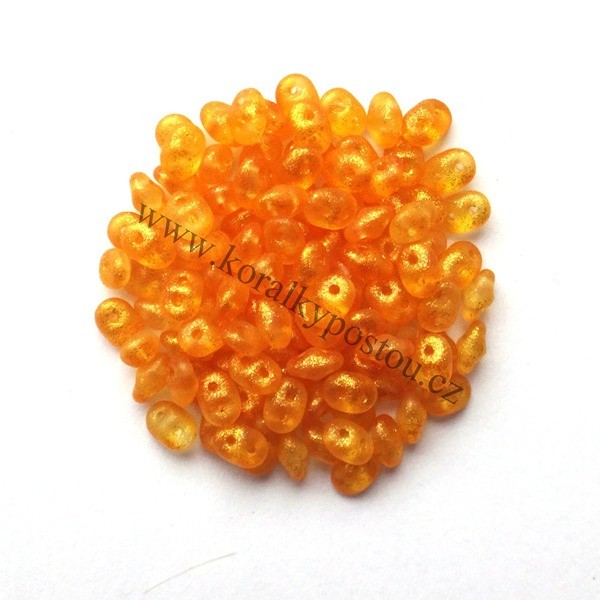 Mačkané dvoudírkové korálky české výroby MATUBO Superduo™, rozměr 2,5 x 5 mm, provedení Frozen Matte Orange. Balení 10 g.