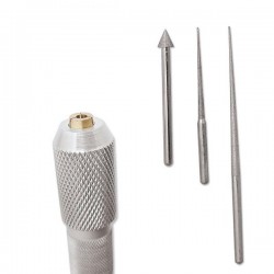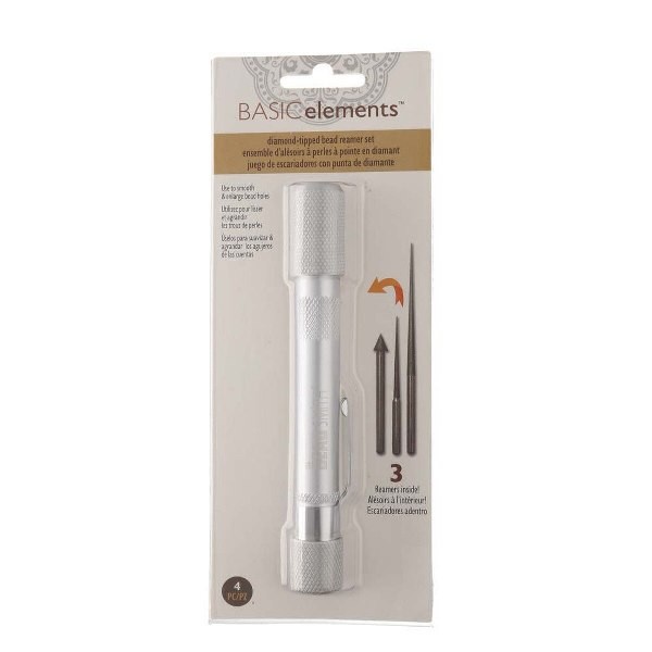 Tyto ocelové nástroje s eloxovanou hliníkovou rukojetí, pokryté  průmyslovým diamantem, se používají k ručnímu zvětšování otvorů u korálků a pro zabrušování ostrých okrajů u korálkových dírek před navlékáním.