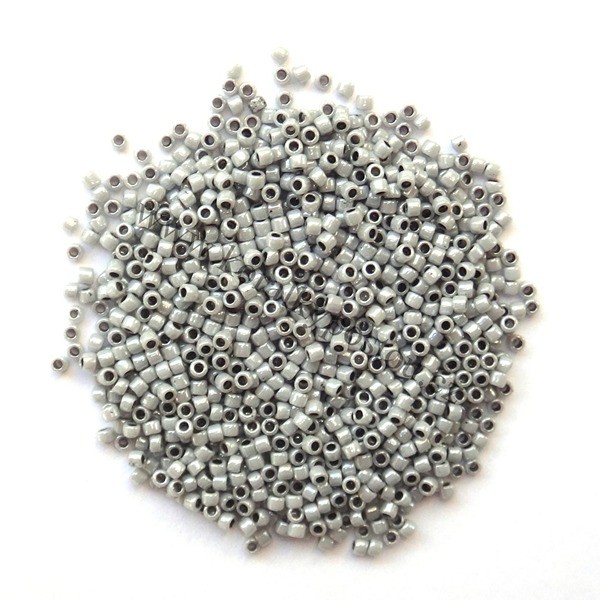 Japonské rokajlové korálky TOHO Round (kulaté), velikost 15/0, provedení č. 820 - Inside-Color Opaque Gray/Black-Lined. Balení 5 g.